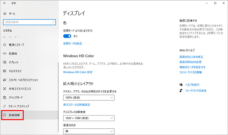 左のメニューの最下部にある「詳細情報」をクリックします。
