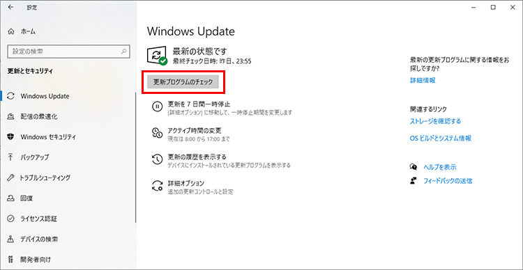 アップデートがまだの場合には、「Windows Update」から、適用することもできます。