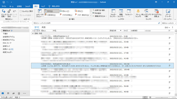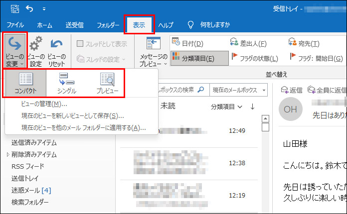 Outlookの表示を、初期設定のまま使っていませんか? 表示はカスタマイズできるので、見やすいように変更してみましょう。表示の変更は、[表示]タブの[ビューの変更]で行います。