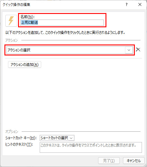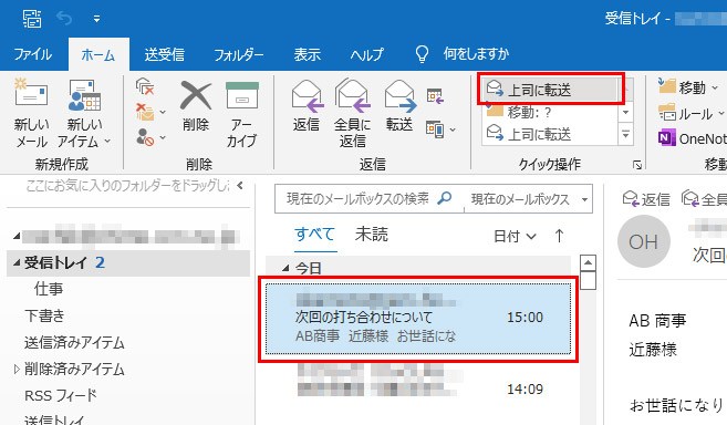 Outlookには、一連の操作を簡単に実行できる「クイック操作」という機能があります。例えば、「上司にメールを転送して、転送したメールは指定のフォルダーに移動する」といったような操作を登録しておけば、操作にかかる時間を短縮することができます。