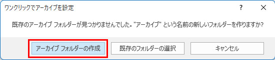 初めて実行したときには、「アーカイブ」フォルダーを作成するかどうかのメッセージが表示されます。「アーカイブフォルダーの作成」をクリックします。