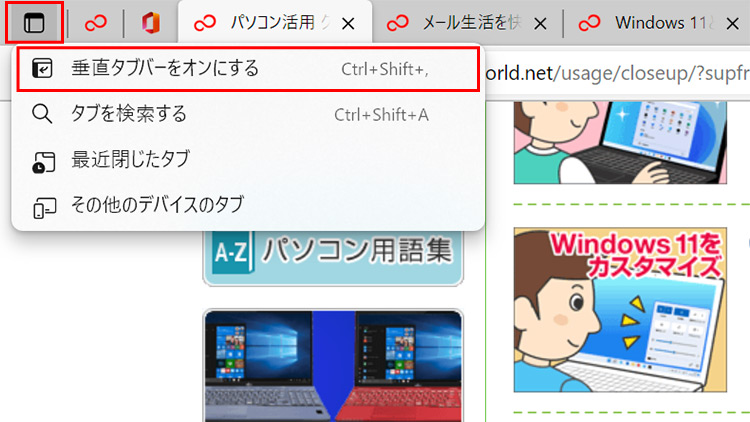 2 タブを縦表示して切り替えやすくしよう