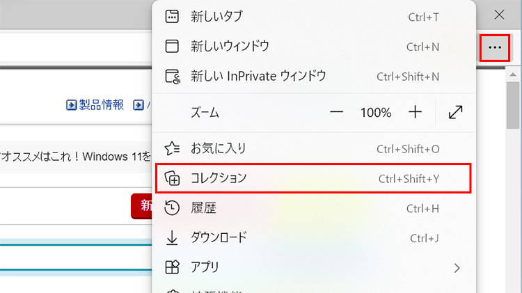 」アイコンをクリックし、「コレクション」を選択します。