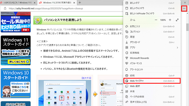 」アイコンをクリックして、「Webキャプチャ」を選択します。