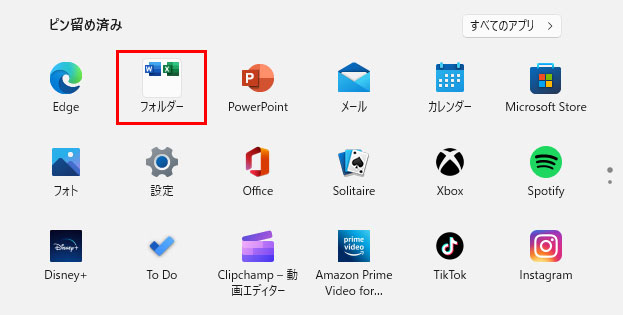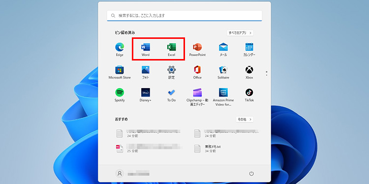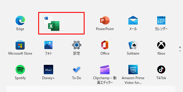 例として、WordとExcelアプリを1つのフォルダーにまとめる方法を紹介します。