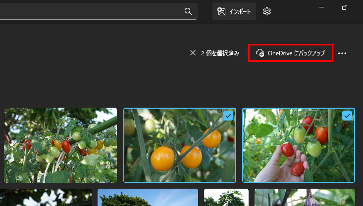 Microsoftフォトでは、パソコン内の写真をOneDriveへ手軽にバックアップすることができます。大事な写真はバックアップしておきましょう。