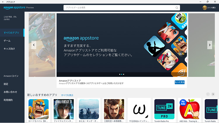 AmazonアカウントでAmazonアプリストアにログインすると、Androidアプリをインストールして実行できます。