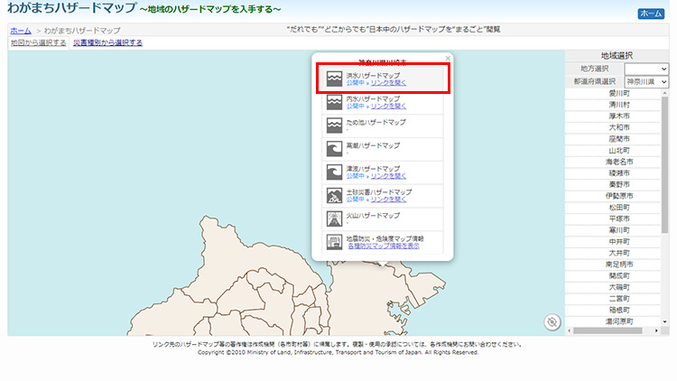 選択した自治体が作成したハザードマップが公開されているページが開きます。
