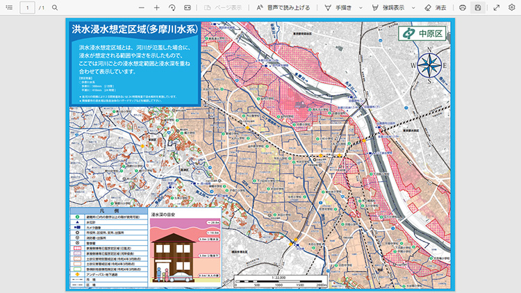 1つのツールに頼るのではなく、複数のツールを用意しておくと安心です。例えばハザードマップも、パソコンでPDF閲覧、スマートフォンでPDF閲覧、紙のハザードマップと用意しておくと安心です。