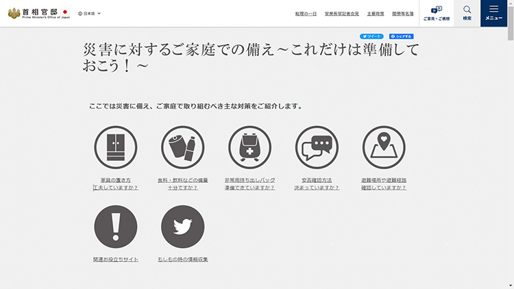 首相官邸ページの「災害に対するご家庭での備え~これだけは準備しておこう!~」にも掲載されているので、参考にしてみてください。