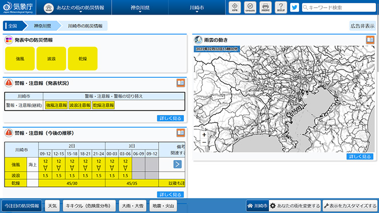 気象庁が運営するWebサイト「あなたの街の防災情報