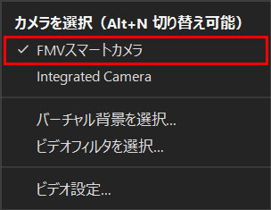 Umoreで画面映りを確認し終えたら、利用する会議アプリを起動して、カメラの設定から「FMVスマートカメラ」を選択します(ここでは会議アプリとしてZoomを使用しています)。設定を完了すると、会議アプリ上にUmoreの顔補正効果が反映されます。