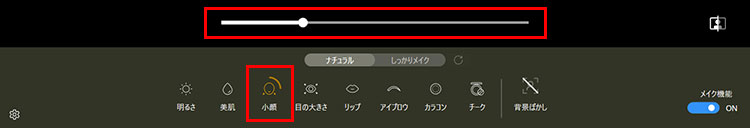 顔補正効果の設定方法