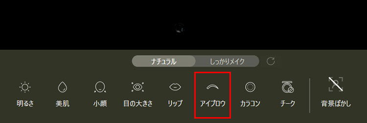 「アイブロウ」アイコンをクリックします。