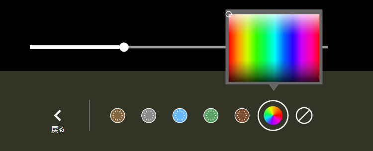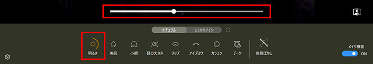 スライドバーを動かして画面の明るさを調整します。右に動かすほど画面全体が明るくなります。