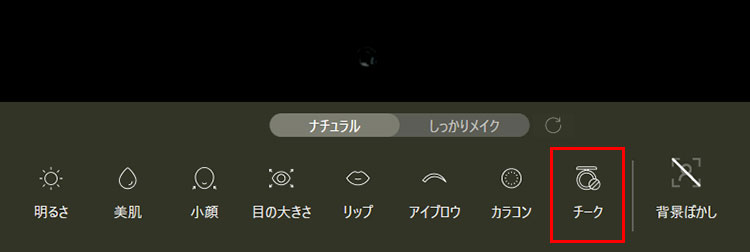 「チーク」アイコンをクリックします。