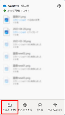 [フォルダーを開く]をクリックします。