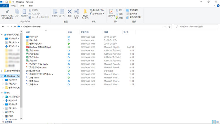 日々更新するファイルを常にバックアップしたり、紛失やパソコントラブルの際にOneDriveのファイルから復元したりすることに活用できます。 - パソコンかOneDriveどちらかのデータ更新で、もう一方も最新版が反映される