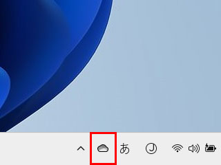 タスクバーのOneDriveアイコンをクリックします。