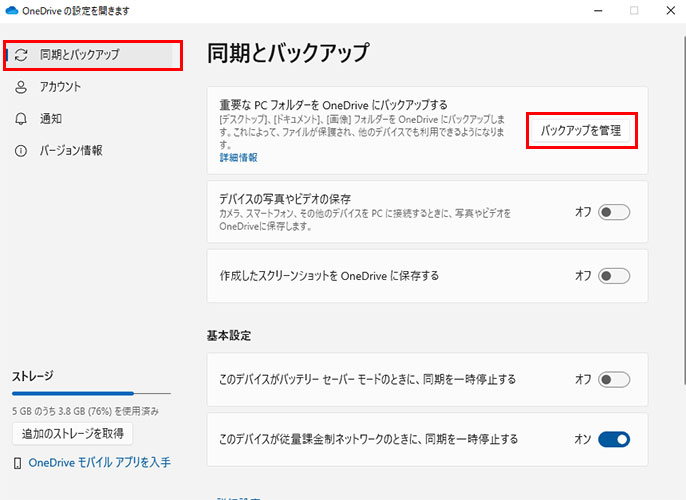 不要な同期の設定を解除し、OneDriveのデータ容量を節約しましょう。