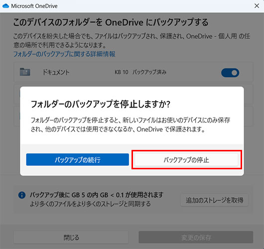 [バックアップの停止]をクリックします。