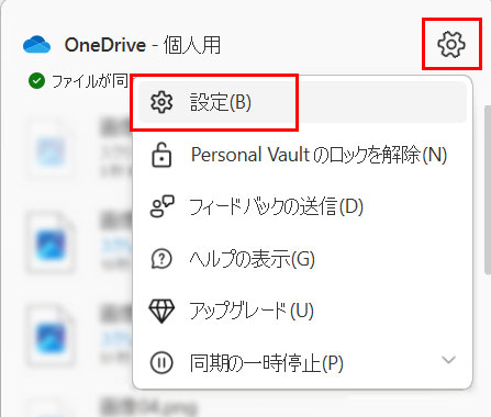 右上の歯車アイコンをクリックし、[設定(B)]をクリックします。