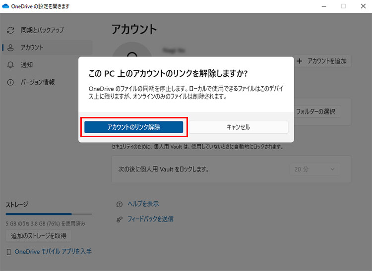 [アカウントのリンク解除]をクリックします。