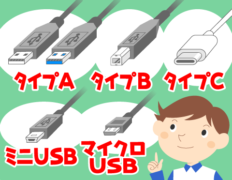 パソコンが搭載するUSBポートの形に対応するケーブルを使用できます。これまでのパソコンではType-A、スマートフォンではマイクロUSBが主流でした。現在注目の形式はType-Cです。上下対称なので、どちら向きに差しても使えます。