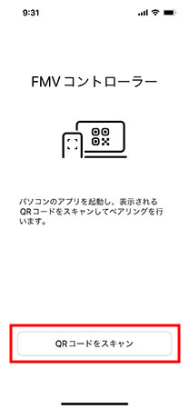 スマートフォンで「FMVコントローラー」を起動し、「QRコードをスキャン」をタップします。