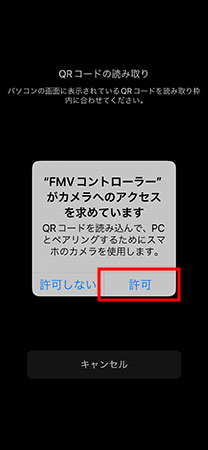 パソコンの「FMVコントローラー」に表示されているQRコード(アプリのインストール時と同じもの)を読み取ります。パソコンのFMVコントローラーを終了している場合は、再度起動し、表示されたQRコードを読み取ってください。
