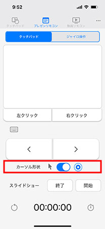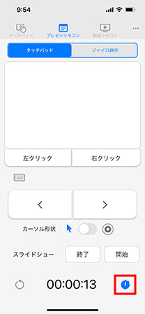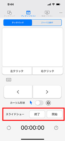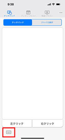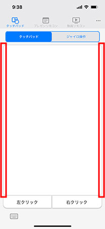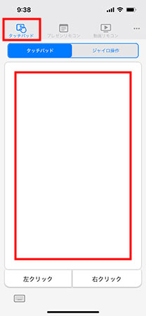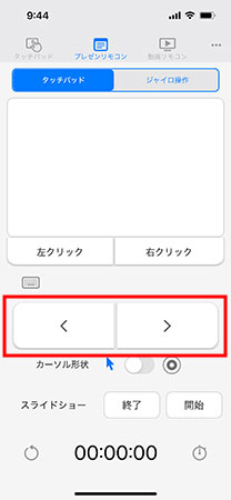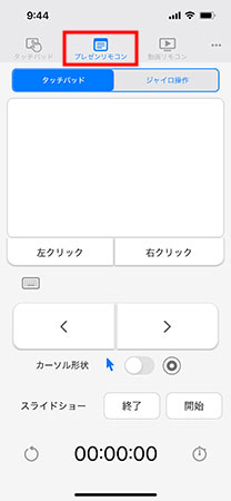 画面上部の「プレゼンリモコン」をタップします。上半分の部分では、「タッチパッド」と同様の操作を行うことができます。