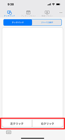 「左クリック」「右クリック」ボタンをタップすれば、マウスの左、右クリックと同じ操作を行うことができます。