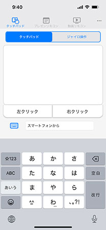 マウスの移動やクリック、文字入力をスマートフォンで行うことができます。いつもスマートフォンを利用していて、フリック入力には慣れているけど、パソコンのキーボードでの入力にはあまり慣れていないといった方もスムーズに文字を入力することができるので便利です。