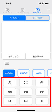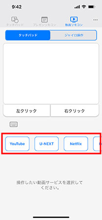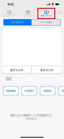 画面上部の「動画リモコン」をタップします。上半分の部分では、「タッチパッド」と同様の操作を行うことができます。