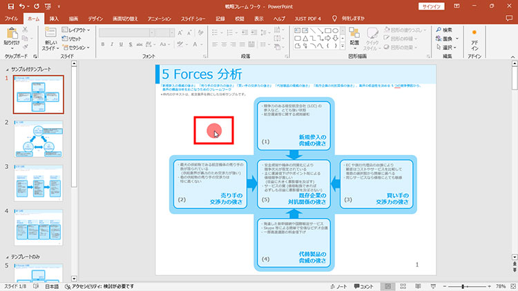 PowerPointのスライドショーをスマートフォンで操作することができます。ビジネスマンや大学生の方などがプレゼンテーションを行う際に、手元のスマートフォンを利用してスライドショーを開始、終了したり、レーザーポインター機能を利用したりすることができるので便利です。