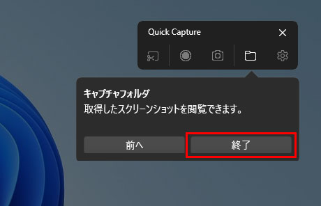「画面キャプチャ」をクリックすると、画面をキャプチャします。キーボード左側の「Ctrl」キーを2回押す、マウスのスクロールホイールを押すことでもキャプチャすることができます。