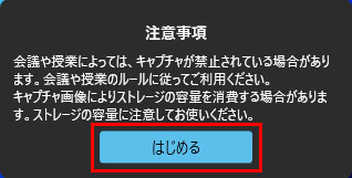 注意事項を確認し、「はじめる」をクリックすると、キャプチャできるようになります。