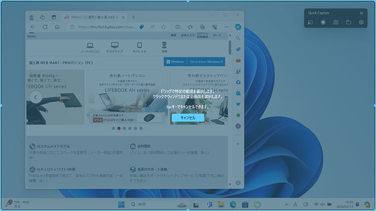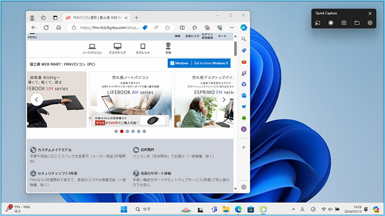 今回はQuick Captureについてご紹介しました。他にも、パソコンの操作方法でわからないことがある、もっとパソコンについて詳しく知りたい、とお考えの方もいるかと思います。当社では「PCコンシェルジュ」という有料サービスをご用意しており、豊富な知識と高いスキルをもった専任アドバイザーが、パソコン活用相談など、幅広い範囲のご相談をお受けします。わかりやすいとご好評をいただいているリモートサポートが利用できます。なお、「FMV プレミアムサービス あんしんスタンダード」という月額サービスによる割引もございますので、ぜひご利用ください。