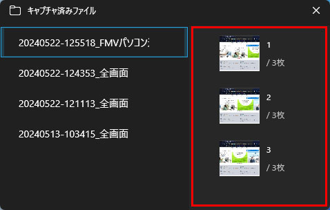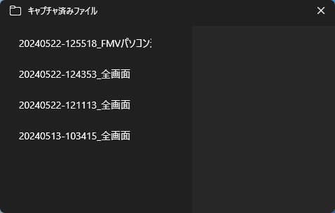 フォルダーをクリックすると、そのフォルダーに保存されているキャプチャ画像が表示されます。キャプチャ画像をクリックすると、クリップボードにコピーされ、貼り付けが可能になります。