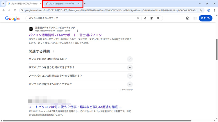 「Ctrl」キーを押しながらリンクをクリックすれば、新しいタブを開いて表示することができます(マウスでリンクを右クリックし、Google Chromeの場合は「新しいタブで開く」、Microsoft Edgeの場合は「リンクを新しいタブで開く」を選択しても同様です)。検索結果ページはそのまま残るので、別の結果を表示するのも簡単です。