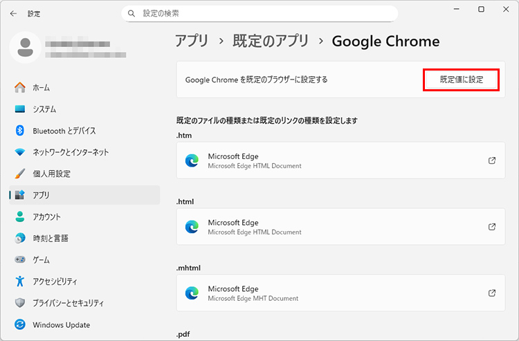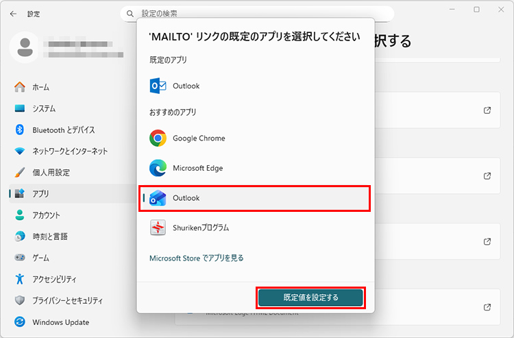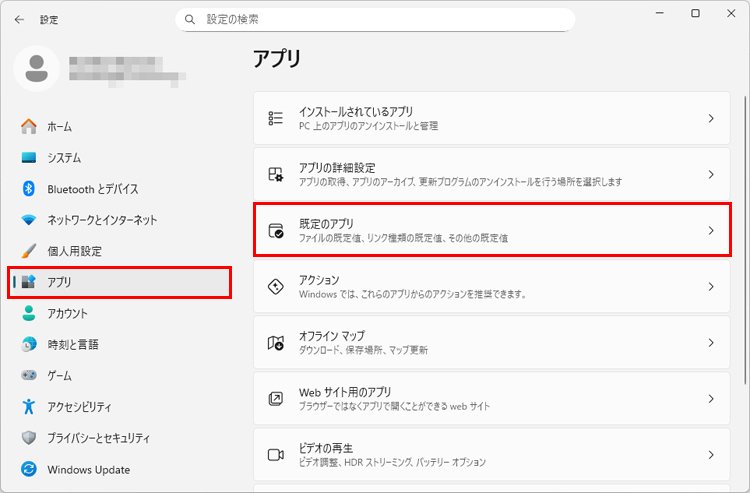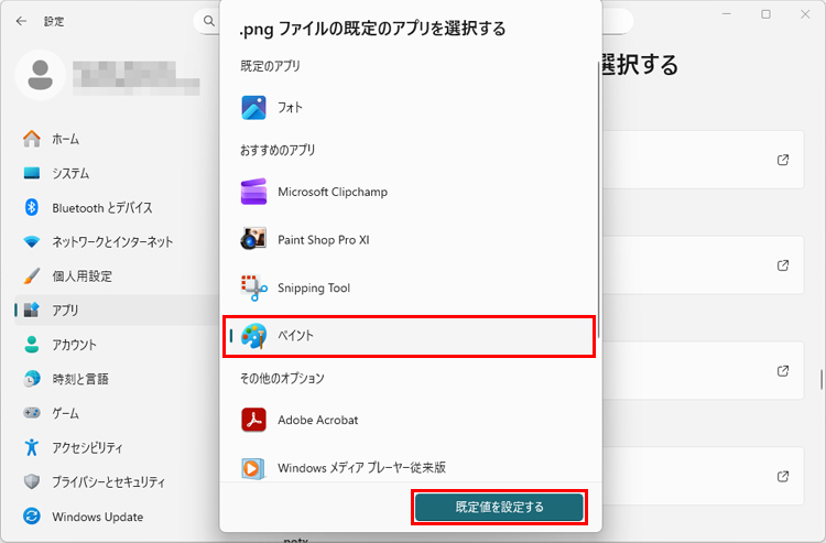 「既定のアプリ」で設定する