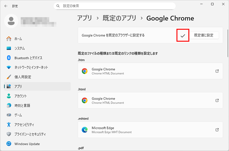 「既定のアプリ」が変更されました。