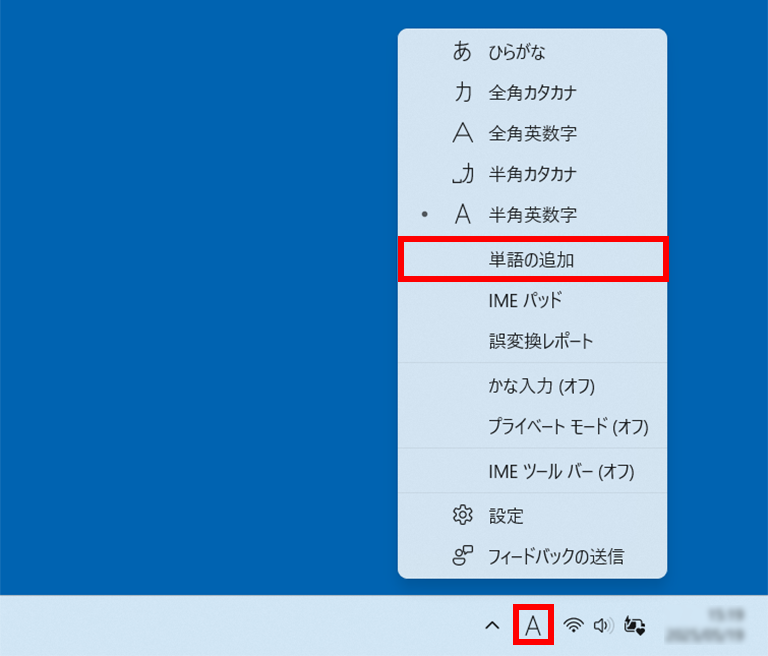 「あ」または「A」と表示されている部分を右クリックします。